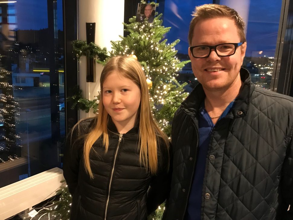 Odd Magnus Ferkingstad er en kjent stemme på Karmøy. Da han skulle spille inn en julelåt, var dattera Mathilde lett å lokke. Hun elsker jul, også i juli. – Da ser jeg julefilmer og spiser peperkaker sammen med tanten min, sier Mathilde. Du hører «Sangen om jul» til slutt i innslaget.